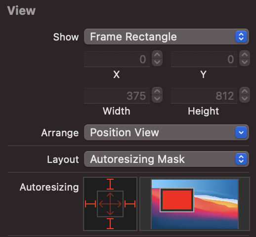 인터페이스 빌더에서 Autoresizing을 적용하는 방법 또한 간단하다.