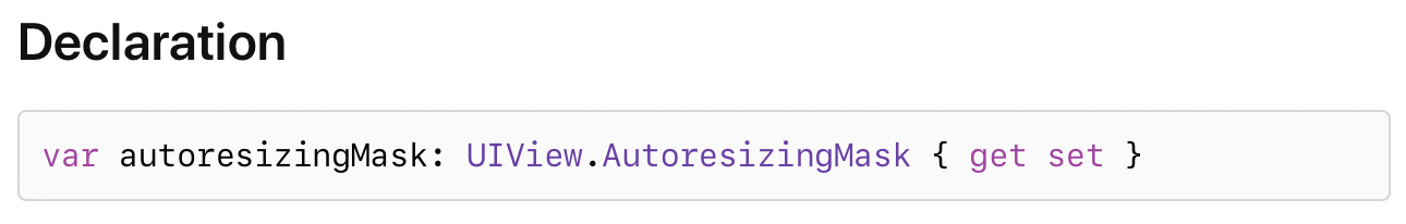그리고 UIView에 정의된 AutoresizingMask 타입은 OptionSet protocol을 채택하고 있다.