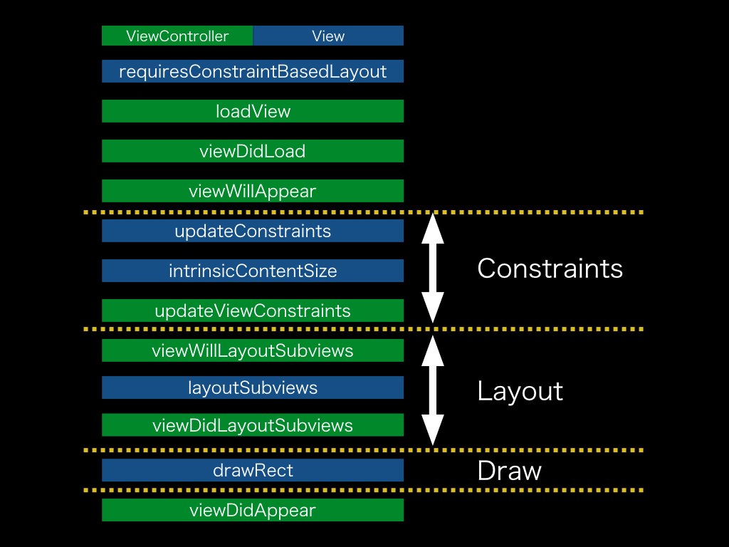 | updateConstraints() | layoutSubviews() | draw(_:) |